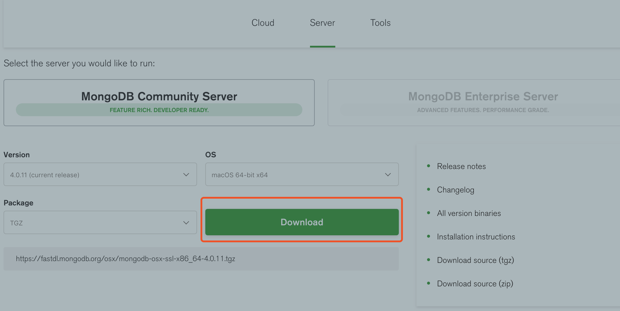 下载地址:http://www.mongodb.org/downloads